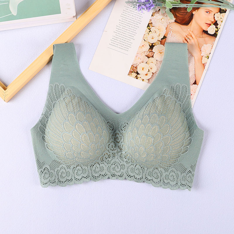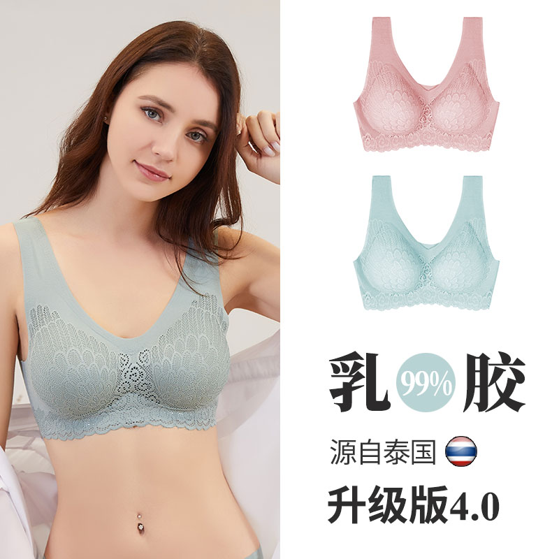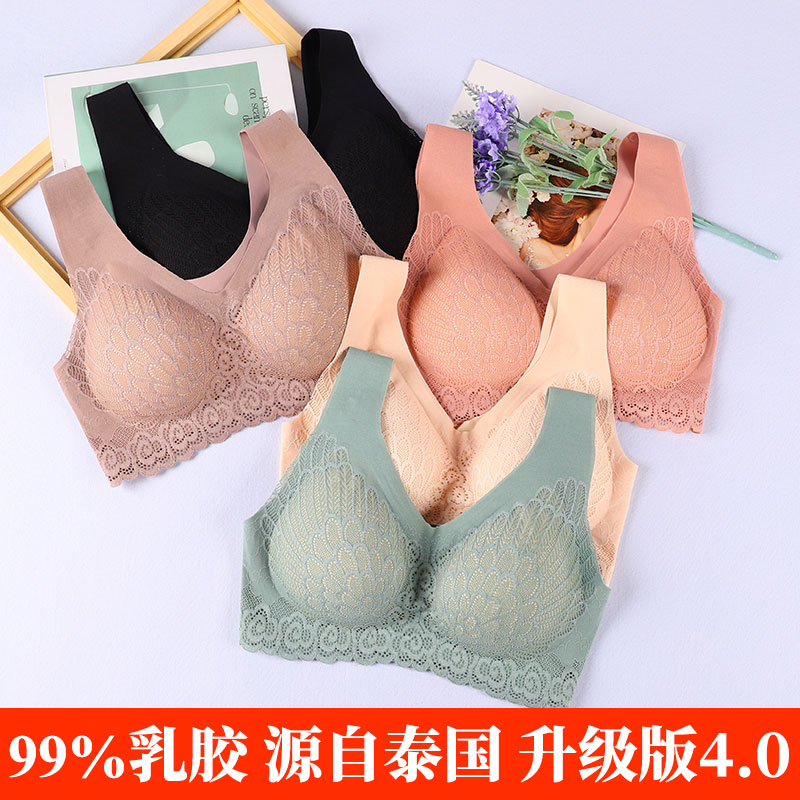 Upgraded version of Thai latex 4 0 underwear gathered small chest thickened seamless lace sports vest no steel ring bra