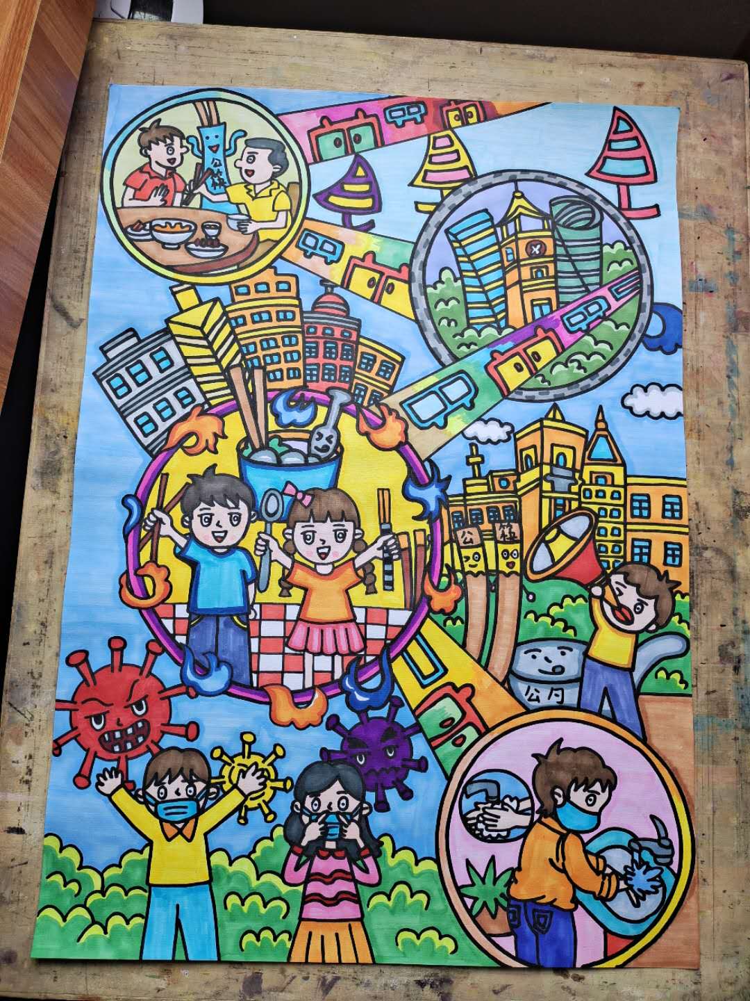 Pure hand-painted painting professional original environmental protection epidemic prevention sci-fi painting children's painting peace poster hand-painted original