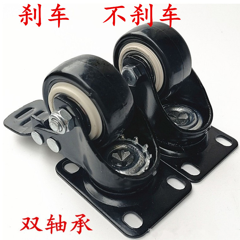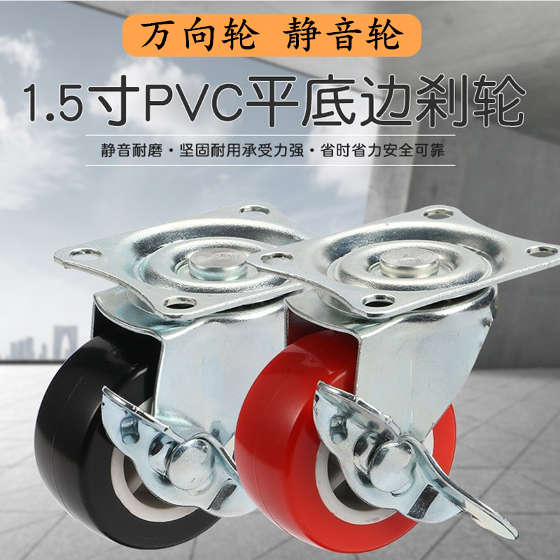 1 5 inch 2 inch flat universal brake caster double bearing mute flower pot wheel daughter gold drilling wheel fattening wheel PVC wheel