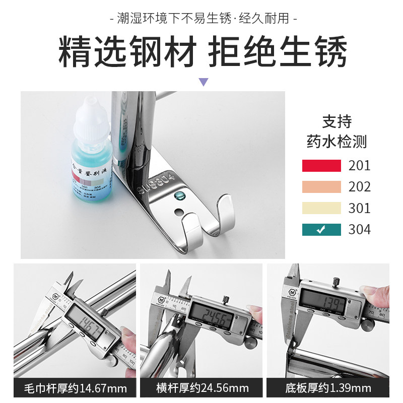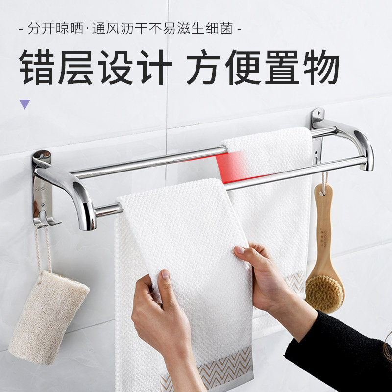 Free Punching Hair Towel Rack Makeup Room Bathroom Bath Towels 304 Stainless Steel Toilet Towel Rod Wall-mounted Racks
