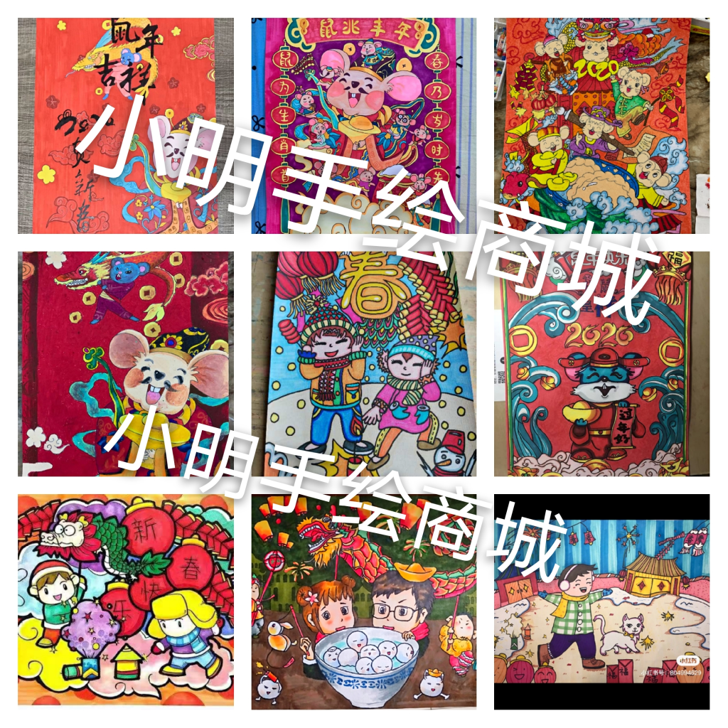 Pure hand-painted painting on behalf of Christmas traditions celebrate New Year's Day to welcome the New Year Chinese New Year Spring Festival Lantern Festival children's mark strokes