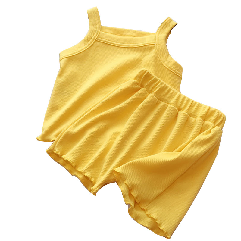 Girls suit 2022 new summer clothes baby suspender top shorts children soft sleeveless vest two-piece set