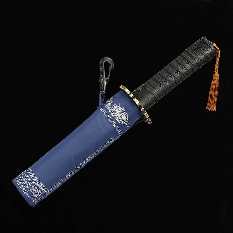 Umbrella men's weather and rain dual-use samurai knife handle fully automatic folding large three-fold umbrella personality creative trend handsome