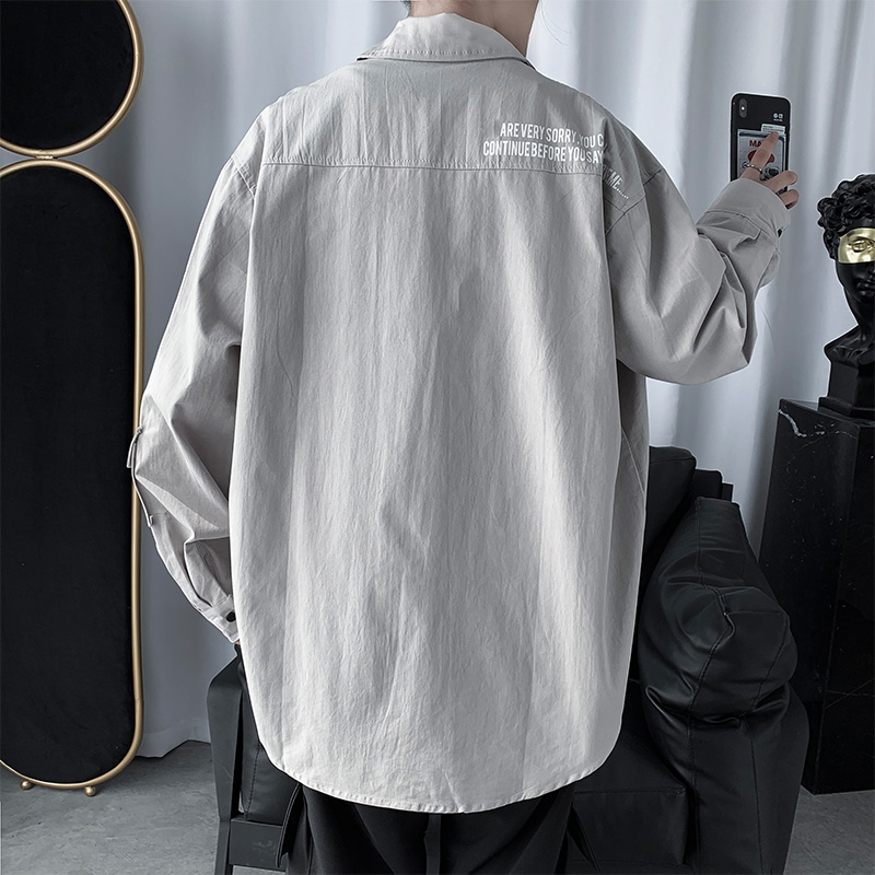 Shirt men's Korean version of the trendy handsome tooling long-sleeved Hong Kong style Japanese very fairy top loose ruffian handsome jacket coat