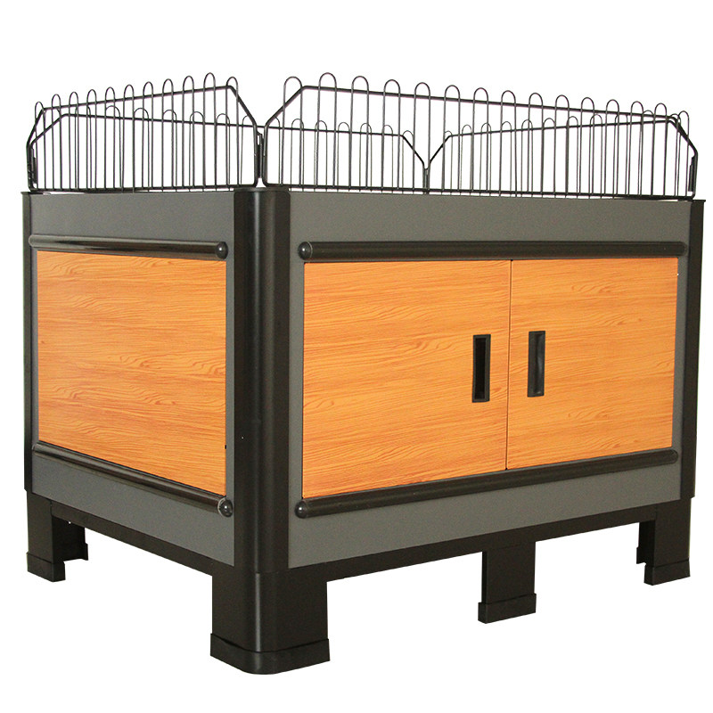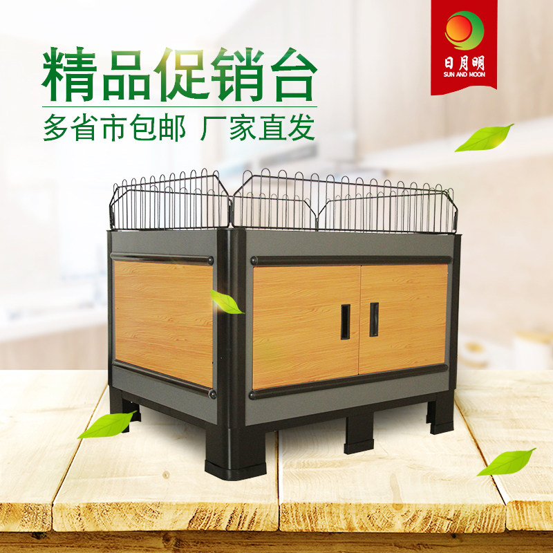 Original direct sales supermarket special price taiwan promotion desk convenience store dump float pile head display table thick wood grain customization
