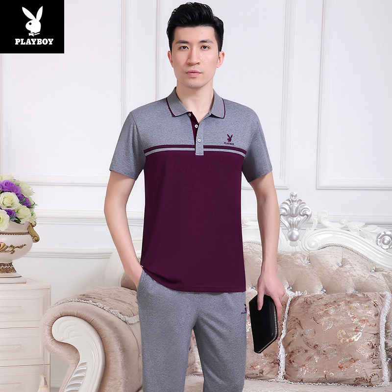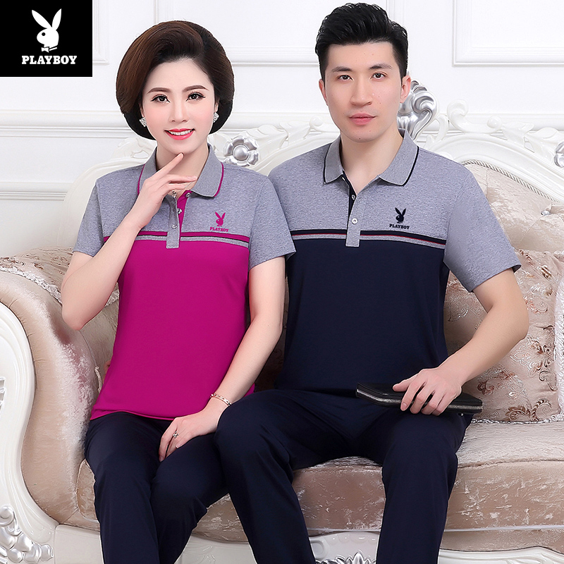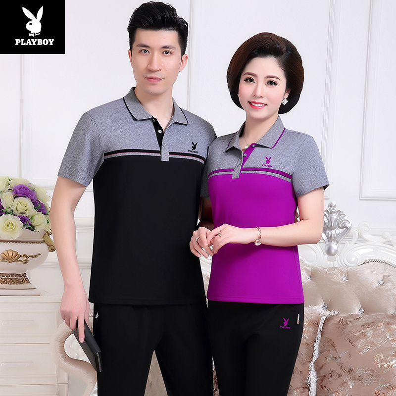 Playboy summer middle-aged and elderly couple sports suits men and women parents short-sleeved sportswear middle-aged summer clothes