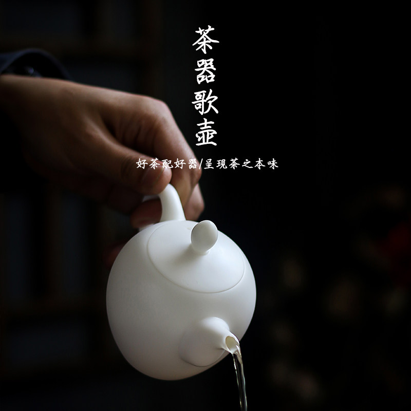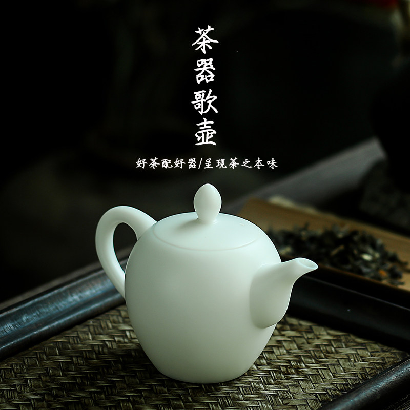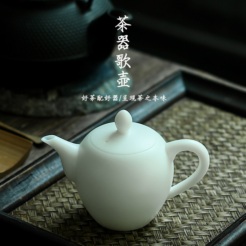 Shea Butter Jade White Porcelain Beauty Bubble Teapot White Simple Trumpet Tea Drinking Teapot Ceramic Pure White Cute Handlebar Pot