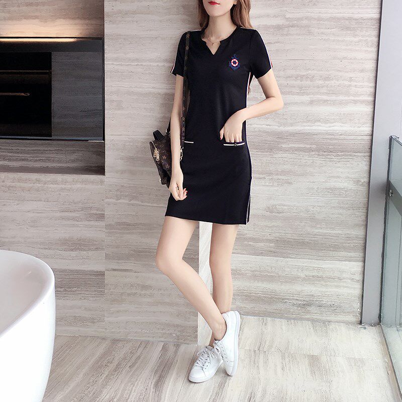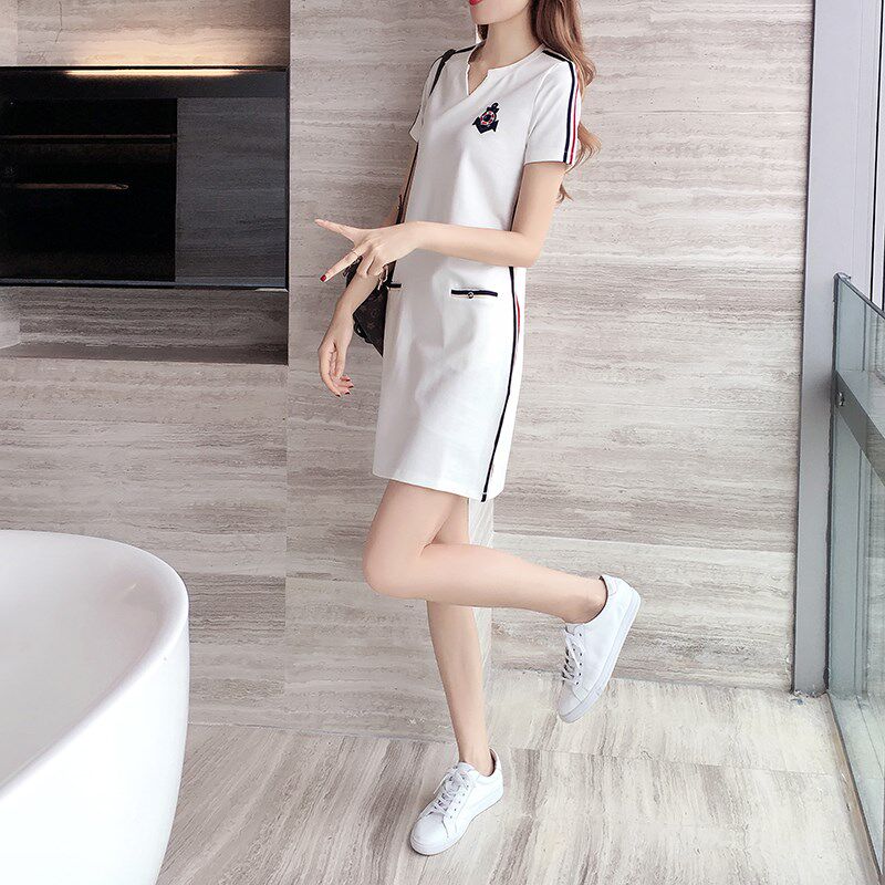 South Korea 2020 new boomer dress women's summer large size women's slim fit slim middle long version sports casual dresses