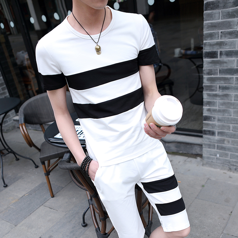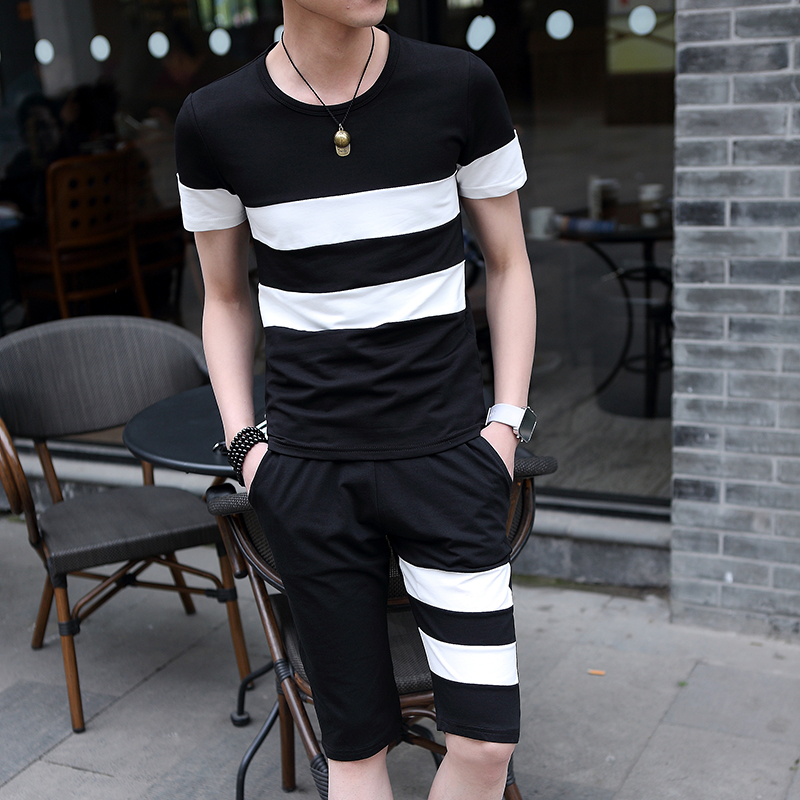 Summer casual short-sleeved shorts shorts suit 2022 new cropped pants men's five-point pants trend clothes pants