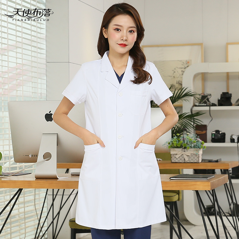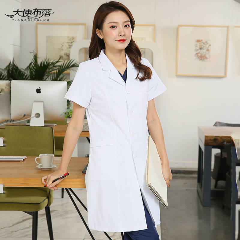 White coat short-sleeved women's and men's summer thin section long-edition doctor's clothes custom printing lab coat nurse oral work clothes