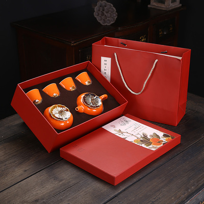 Creative events such as porcelain persimmon tea set Kung fu tea set festive gift package customized logo