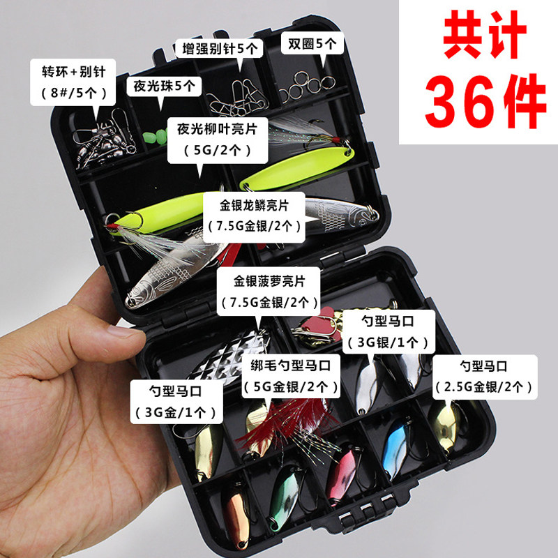 36 pieces of metal bionic sequin accessories Lure bait combination set Iron piece fake bait boxed fishing rig fishing gear accessories