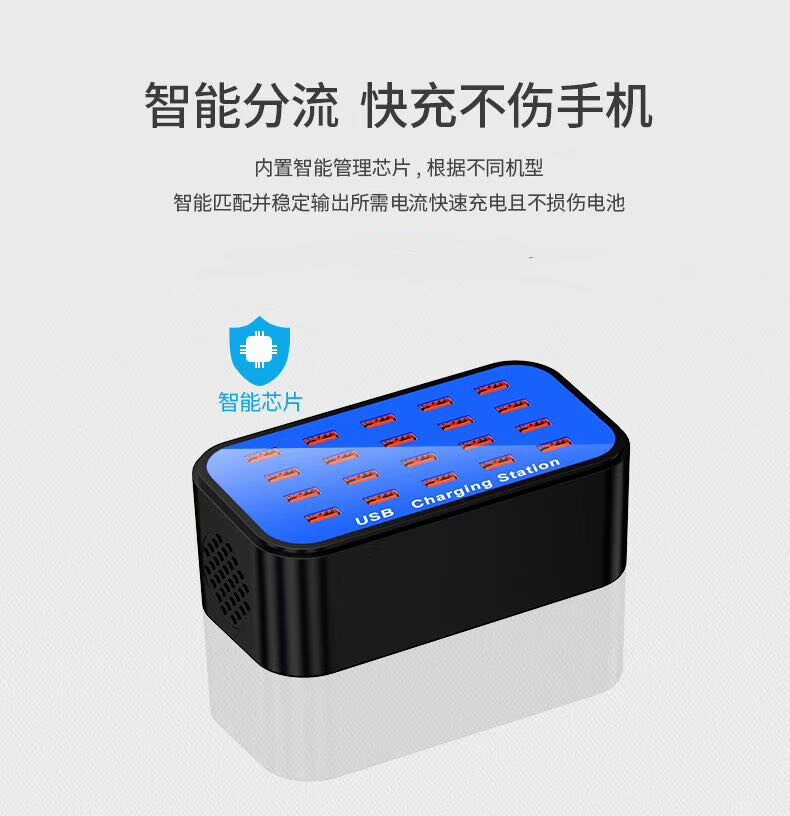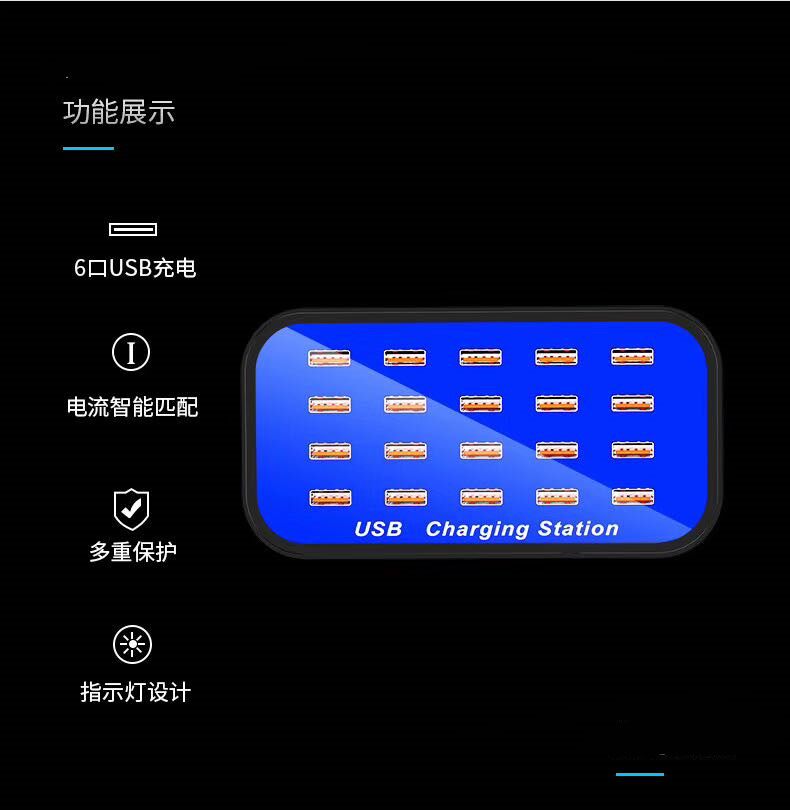 Multi-mouth USB charger 20 MOUTH ANDROID PHONE CHARGER 2a FLAT GENERAL POROUS POSITION STUDIO CHARGE HEAD