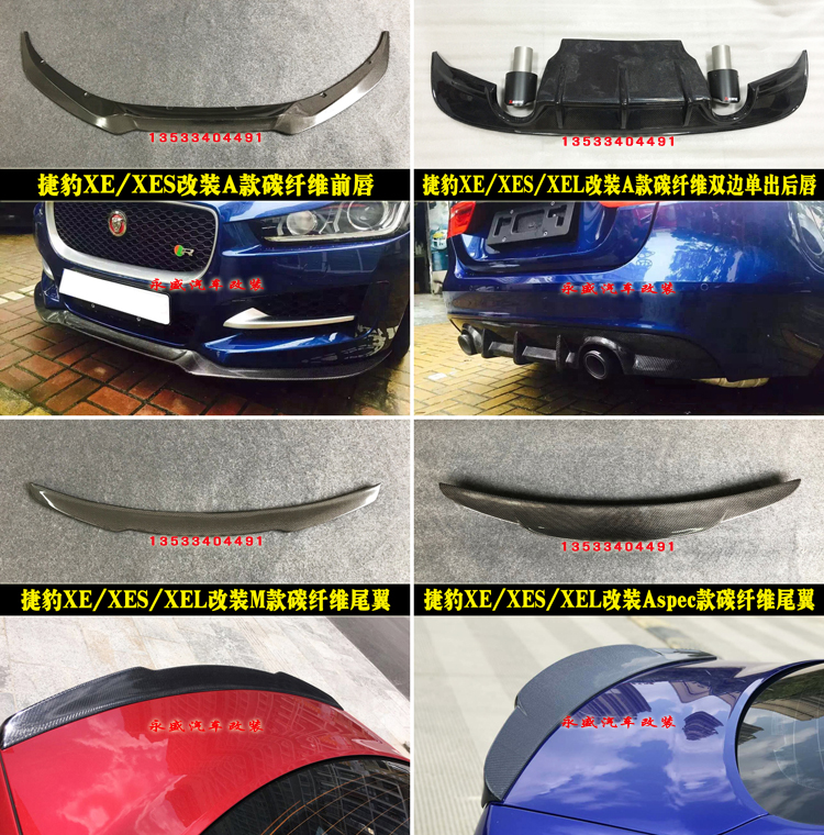 Suitable for Jaguar XE XES XEL XF XFL retrofitted carbon fiber packet front lip rear lip side skirt tail