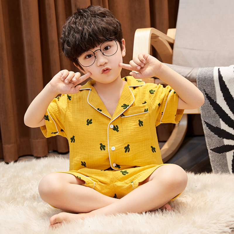 2022 new boy Home Suits Suit Baby Sleepwear Thin Children Foreign Pie Short Sleeve Summer Air Conditioning Pure Cotton