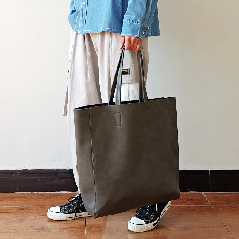 Handbag men's large capacity soft leather bag casual fashion shoulder bag couple Korean version simple versatile bag bag tide