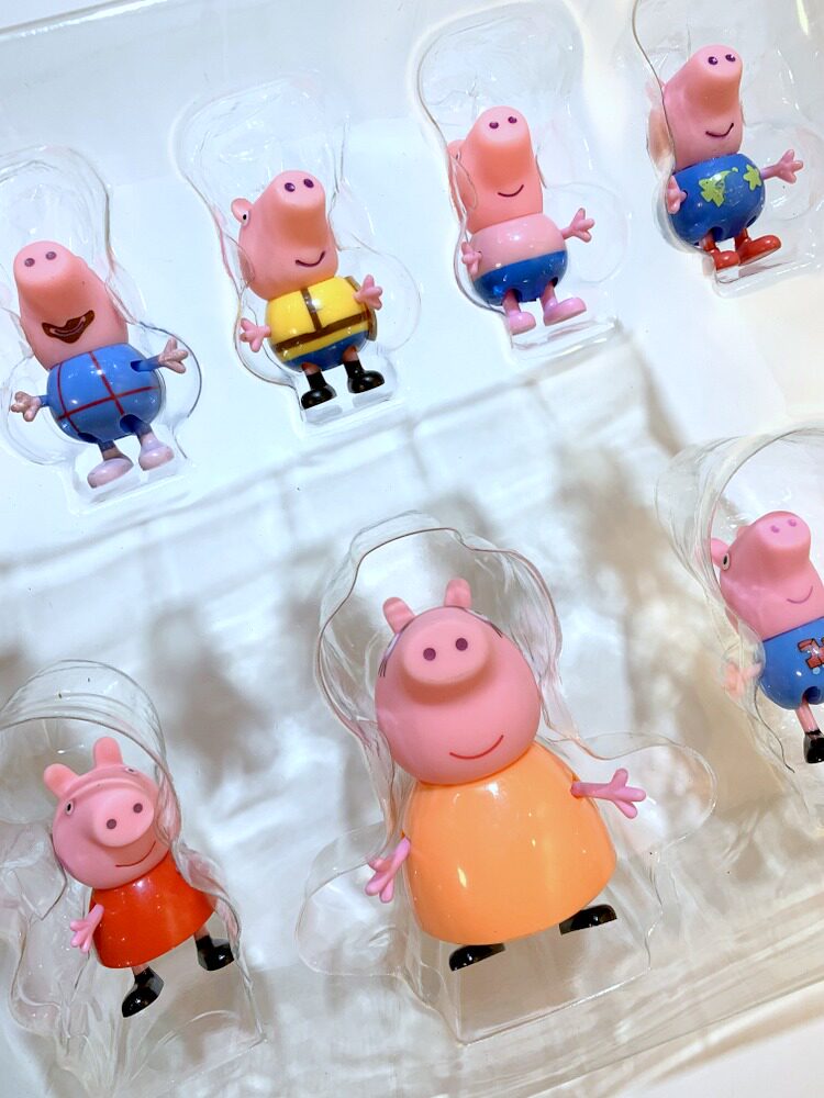 Piggy Toy Petch Family Home Wine Doll Corner Color Play Swing 8 pieces for a family of four.