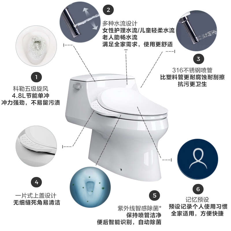 Toilet with smart cover plate (install three - piece set) Toilet with smart cover three - piece sets