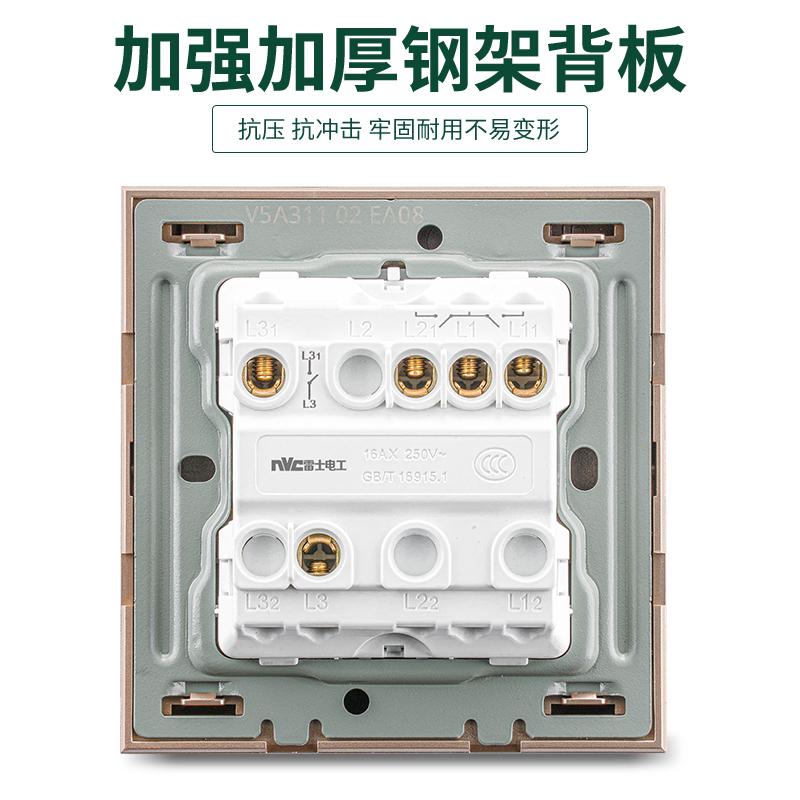 Rye triple open single control switch socket panel 86 type wall switch 3 open 3-position single-control power lamp switch V5