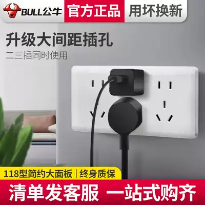 Bull large spacing socket with switch surface mounted 118 type six nine double five holes concealed bright wall panel porous