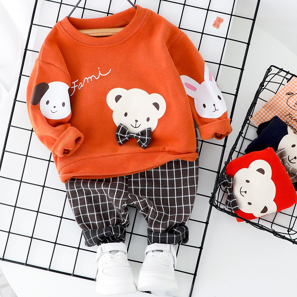 Bear Bow Tie Sweater Orange Pants Spring and Autumn Two-piece Set 1 Bear Bow Tie Sweater Blue Pants Spring and Autumn Two-piece Set 1 Bear Bow Tie Sweater Red Pants Spring and Autumn Two-piece Set 1
