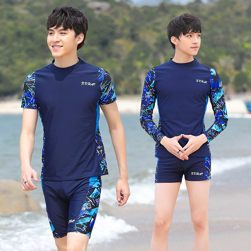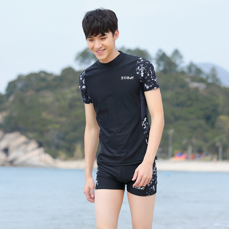 Split swimsuit men's sunscreen quick-drying top hot spring short sleeve teen flat angle full body men's swimsuit set
