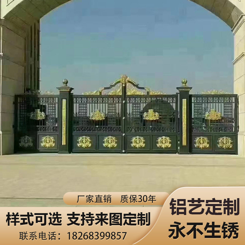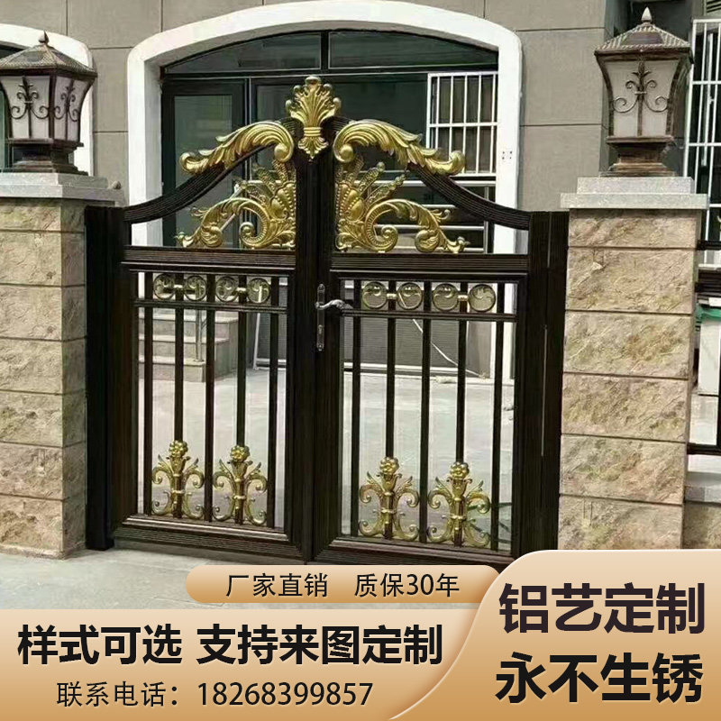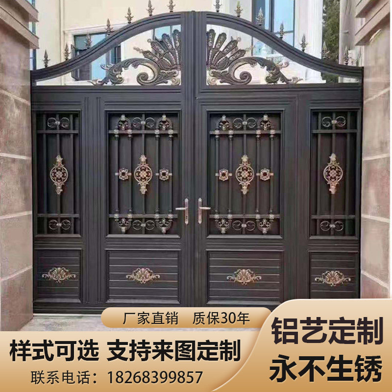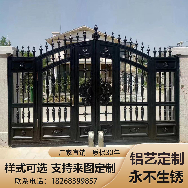 Rural wrought iron gate courtyard gate villa double gate wall gate construction site telescopic gate gate European-style carving