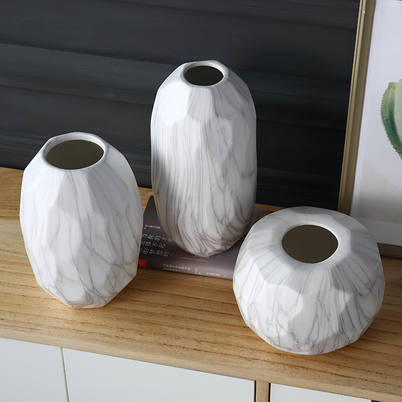 Modern minimalist Nordic marble textured ceramic vase creative living room dining room Flower Florist Home Decoration