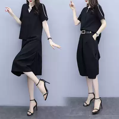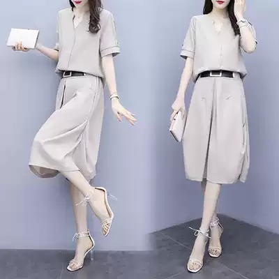 Summer clothes show thin age, light mature sister wind suit, Hong Kong style Foreign style temperament skirt fashion two-piece goddess Fan female