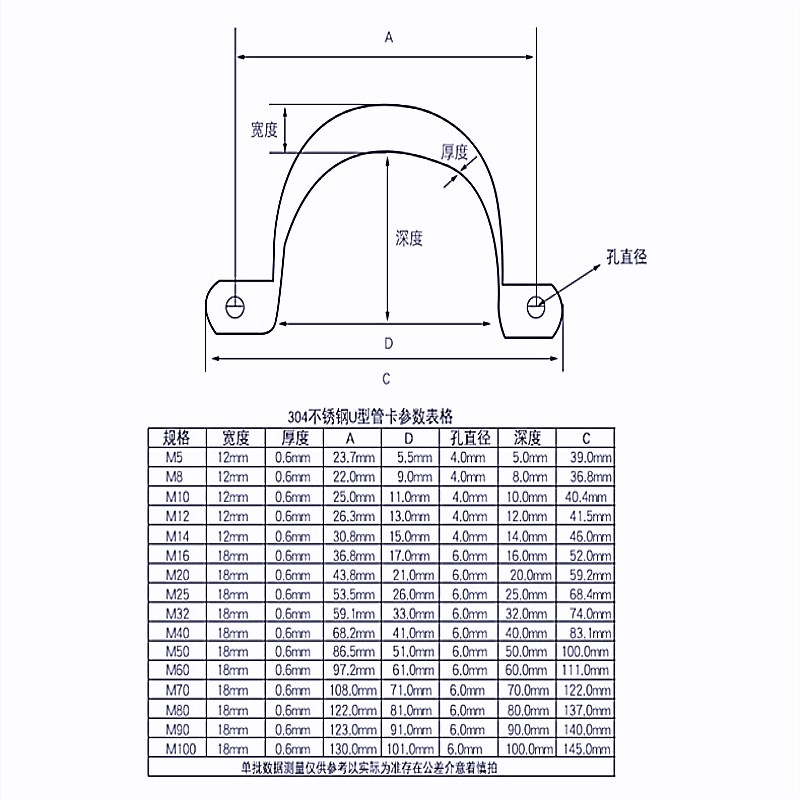 304201 stainless steel pipe clamp riding card holder pipe holder pipe fastening throat hoop water pipe clamp U type pipe hoop hoop saddle