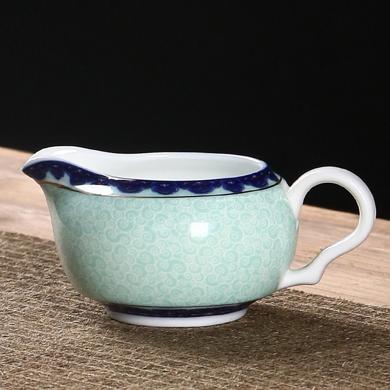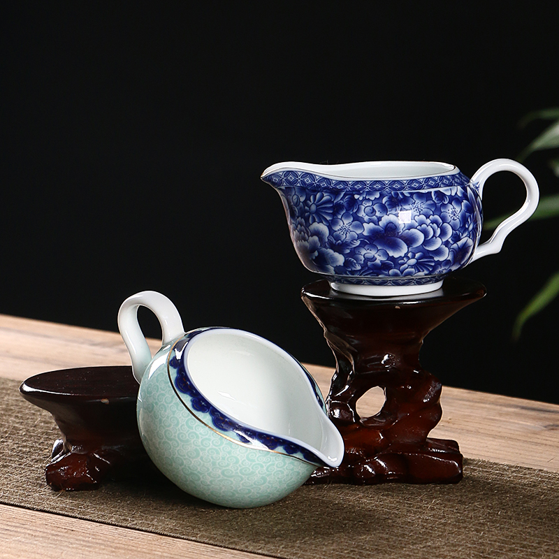 Haoyue blue and white porcelain high-grade gold tracing fair cup ceramic tea splitter large tea sea kung fu tea set tea ceremony spare parts