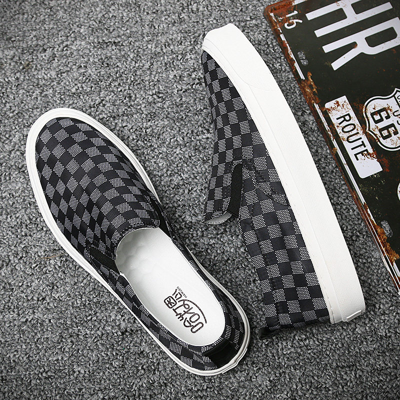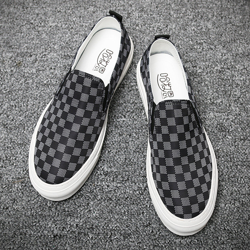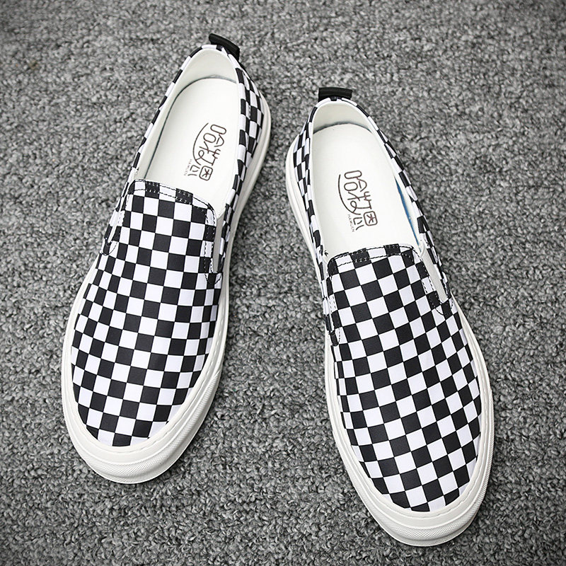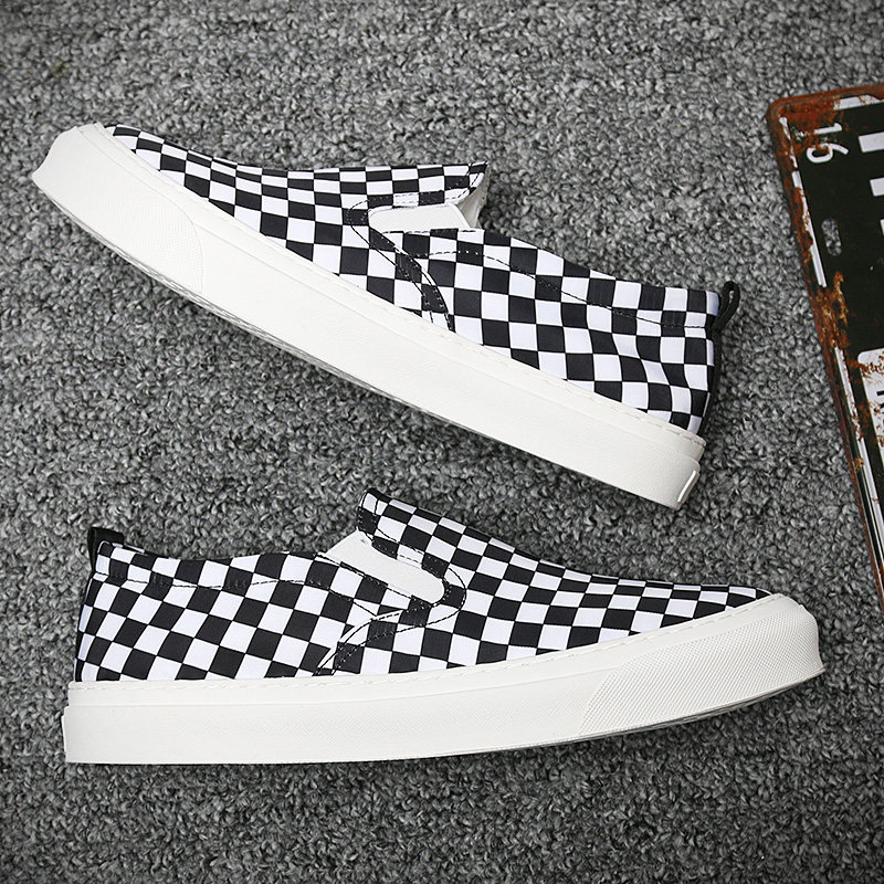 2022 new men's shoes checkerboard plaid autumn and winter one pedal low-top casual sneakers black and white gray lazy canvas shoes tide