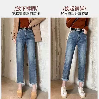 Straight jeans women 2021 new spring and autumn ladies high waist old father Joker thin loose Harlan ankle-length pants son