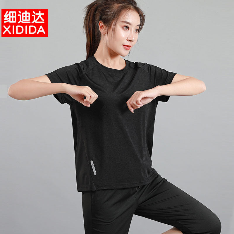 New sports women's short-sleeved quick-drying breathable mesh loose fitness running yoga badminton tennis training top