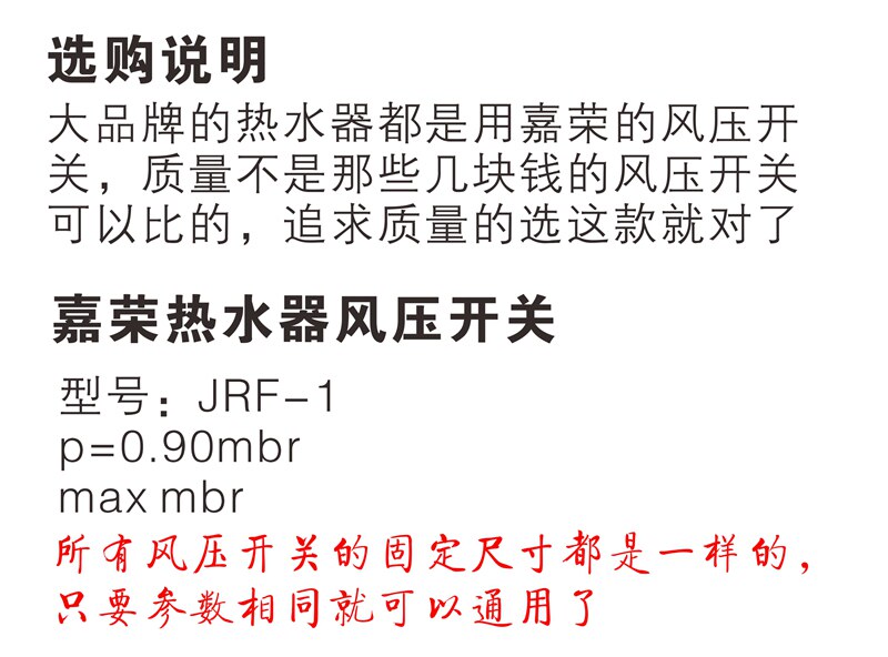 Perfect water heater wind pressure switch JRF-1 universal accessories big all-apply Huateng family music maintenance Jiarong 3