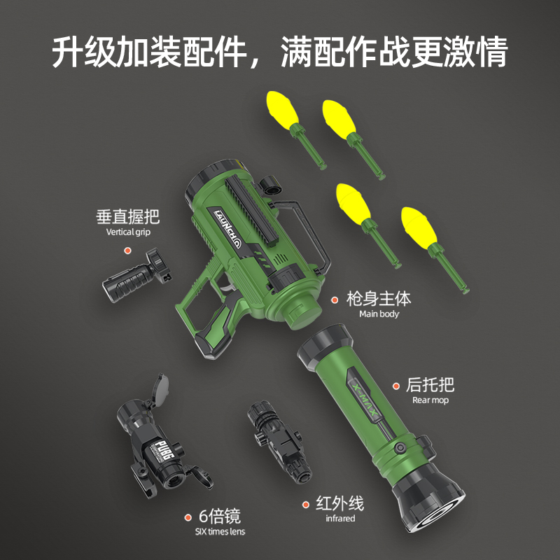 Four-barrel rocket-green (4 shells) Four-barrel rocket-white (4 shells) New small rocket launcher toy (5 shells oversized sound and light rocket (auspicious red 3
