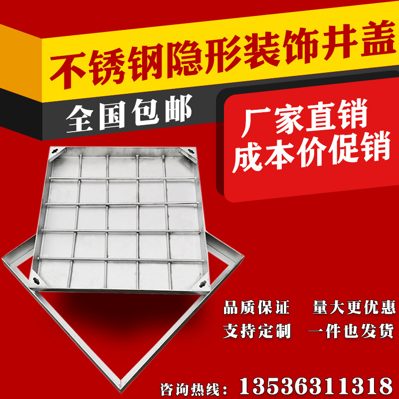 Stainless steel invisible decorative manhole cover Yin manhole cover rain square round sewer sinking type 201 304 custom