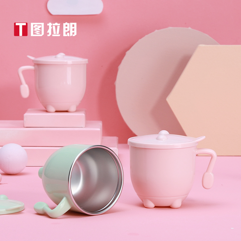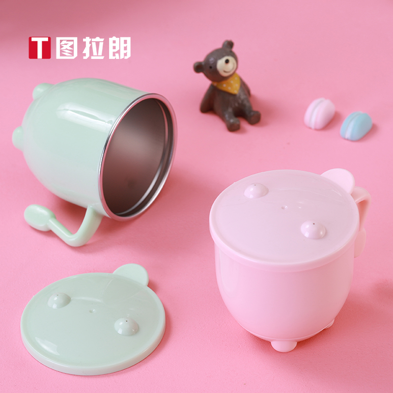 304 stainless steel children's water cup household cup with cover anti-fall baby kindergarten mouth cup primary school students handy cup