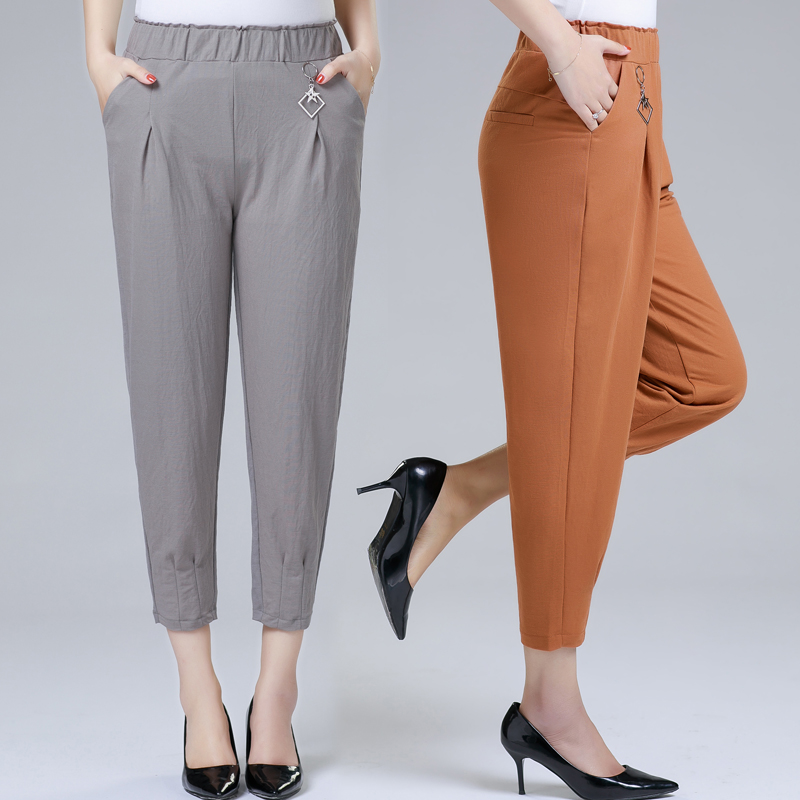 Middle-aged mom summer thin high-waisted loose nine-point pants middle-aged and elderly women's casual elastic waist harem pants for outer wear