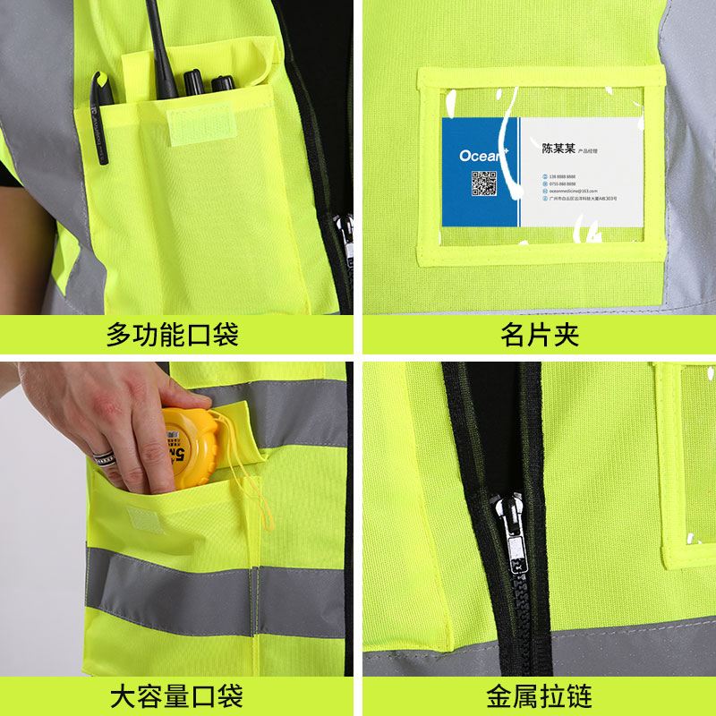 Reflective vest construction site construction vest sanitation workers car annual review multi-pocket reflective vest printing