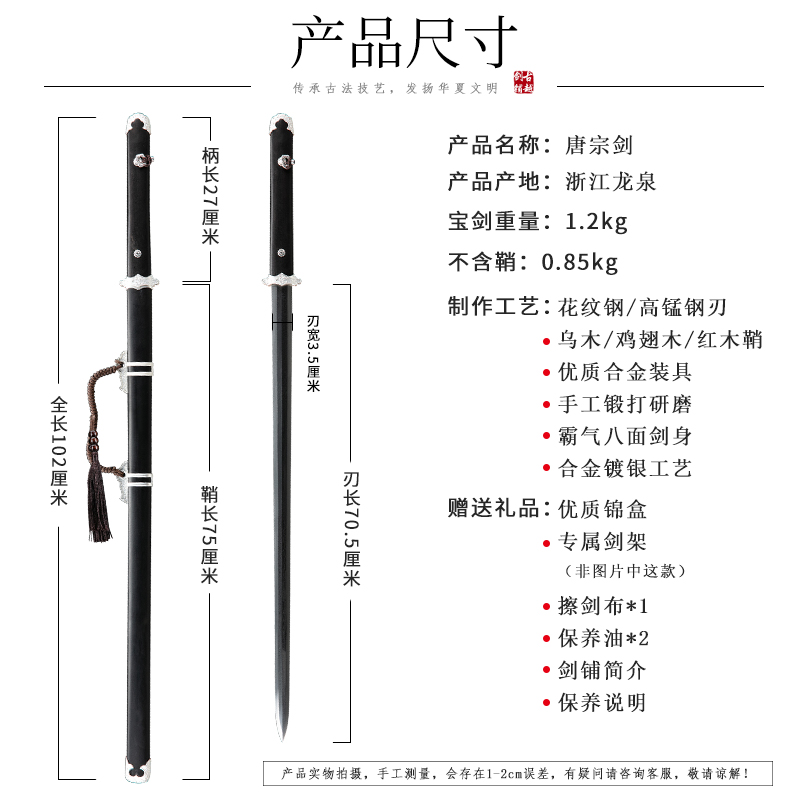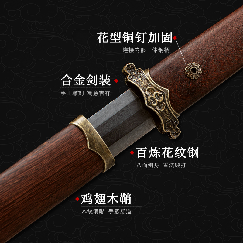 Dragon Springs Ancient integrated steel Tangsword handmade sword long version Baojian traditional Tang sword flower pattern steel hard sword long sword unopened blade