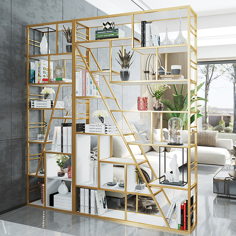 Wrought iron partition shelf Floor-to-ceiling bookcase Creative modern simple living room Nordic Study Office Solid wood bookshelf