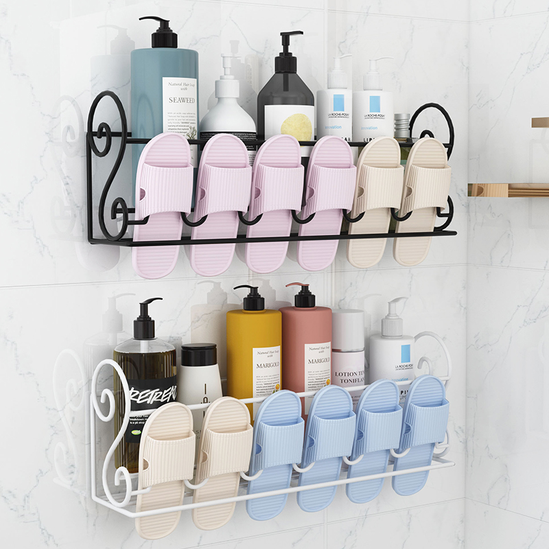 Bathroom slipper rack wall-mounted free punching bathroom shoe rack door rear rack storage artifact simple