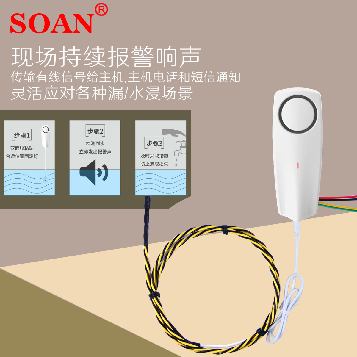 SOAN wired leaky siren Domestic water dip probe overflowing with water sensor wired signal output
