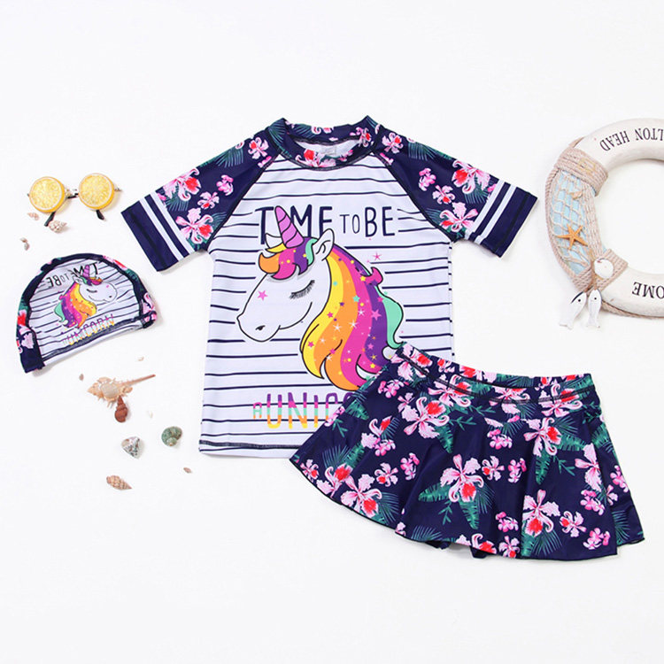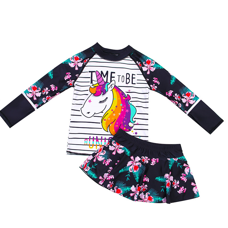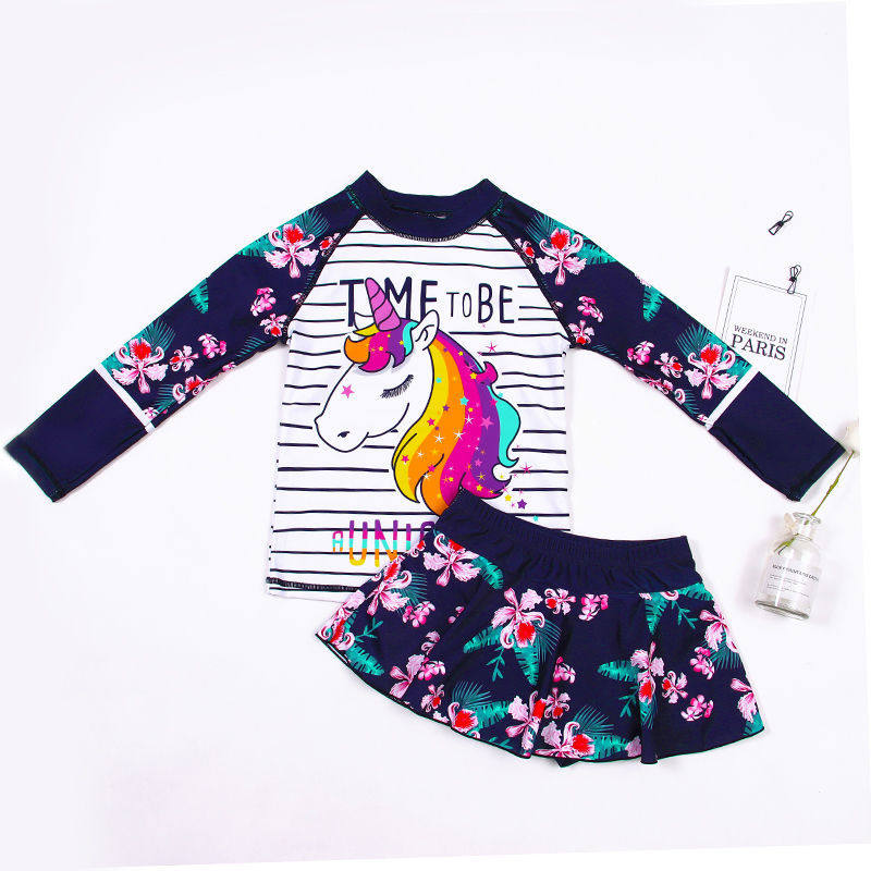 Girls swimsuit children's long-sleeved summer sun protection two-piece skirt nylon swimsuit middle-aged children's sports swimwear