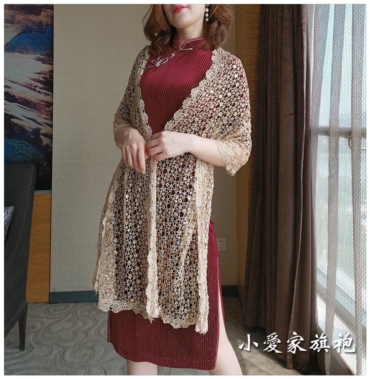 Spring and summer new upscale fashion lace bright sheet shawl matching a qipao gown with a rectangular wedding banquet Mother's section