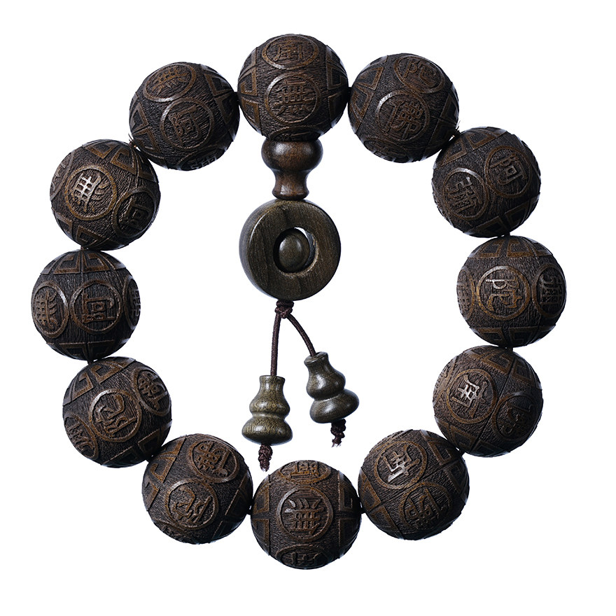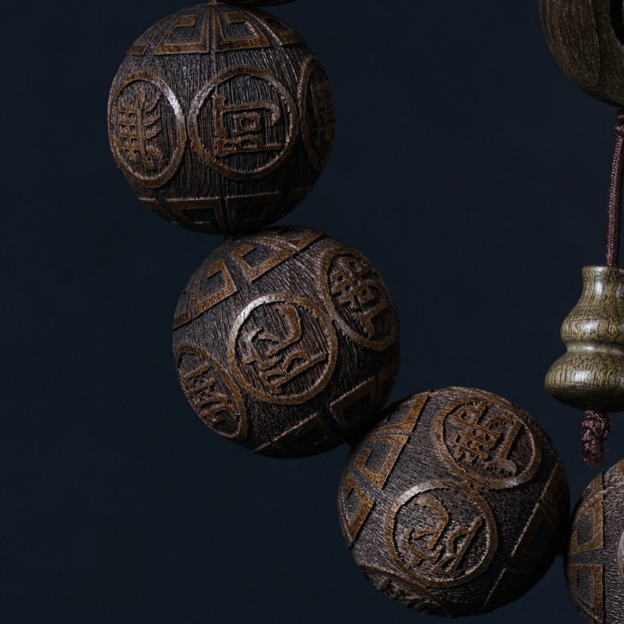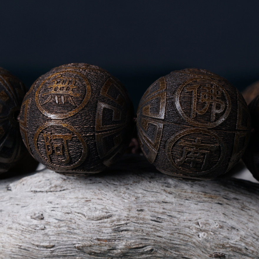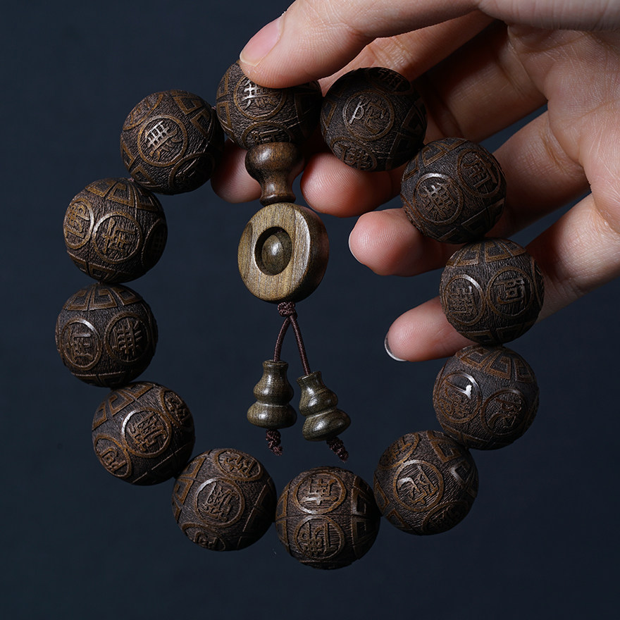 Sparkling (South no Amitaba Buddha) Golden Silk Nan Yin Sunken Wood 20mm Xiaoye Zhen's Old material Engraving Handstring
