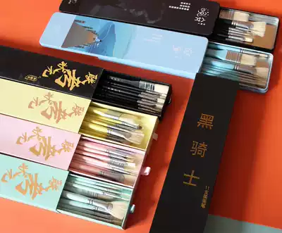 Black knight watercolor pen set bristle fan-shaped pen Watercolor oil painting acrylic brush Single art special color brush Student beginner brush Flat head painting brush brush black hook pen Student