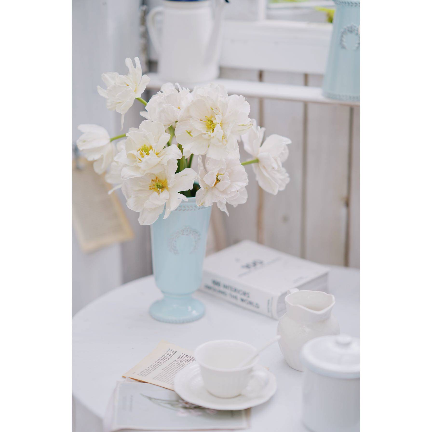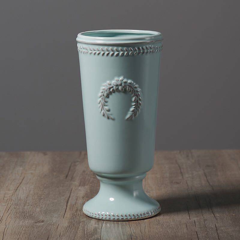Ceramic Vase relief sky blue ceramic milk pot vase
