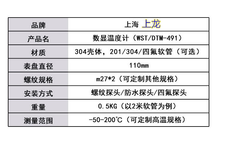 Digital thermometer with monitor wst dtm491 with line high-precision acid-resistant waterproof digital industrial thermometer